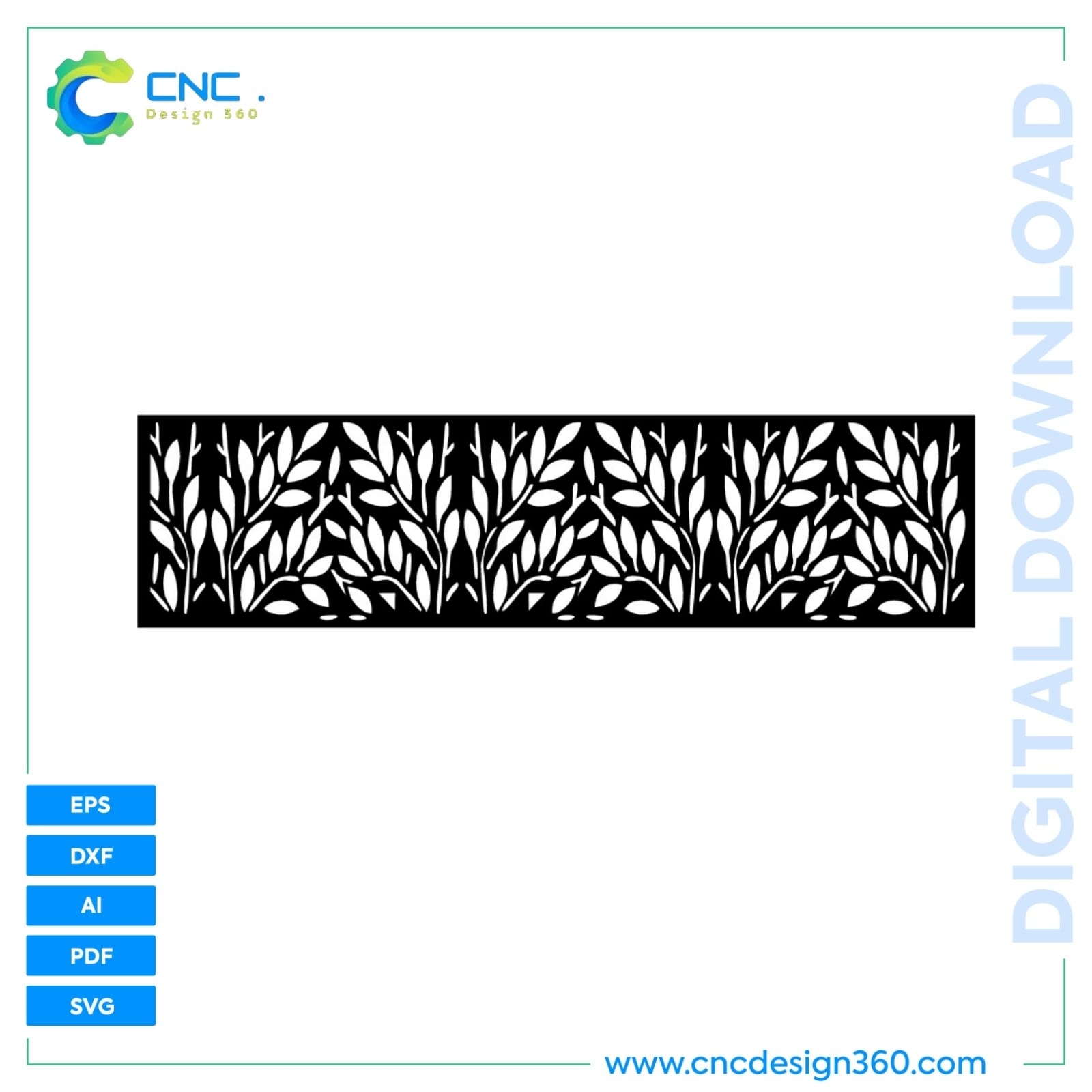 Each design is available in CNC-ready vector formats (SVG, DXF, PDF, AI, EPS), making it easy for fabricators and builders to create precise stair panels, railings, and decorative accents using laser cutting, plasma cutting, or wood carving. The leaf tilt style adds a natural flow, giving your staircase a unique identity while maintaining strength, safety, and durability.